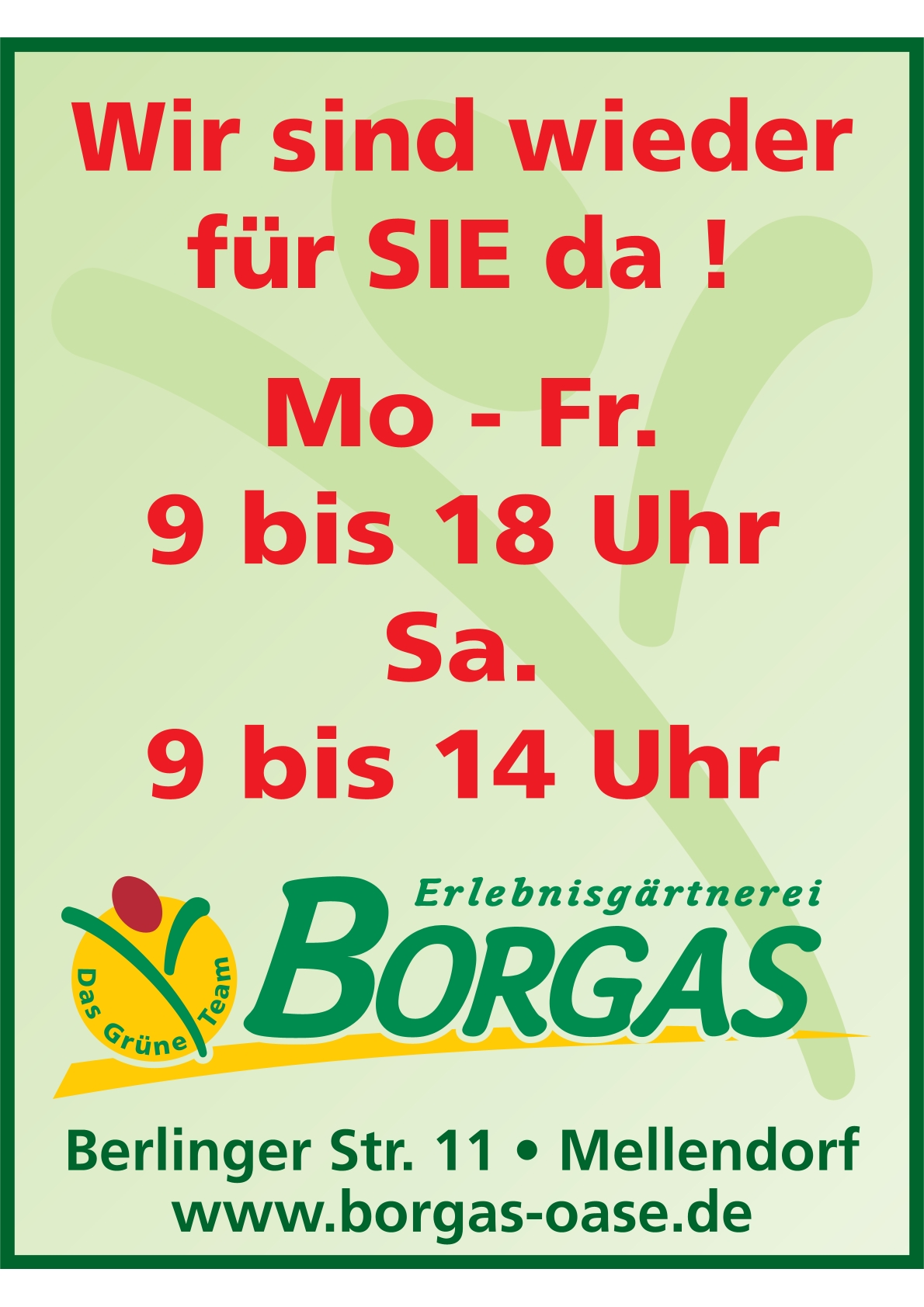 Montag - Freitag 09:00 - 18:00 UhrSamstag 09:00 - 14:00 Uhr